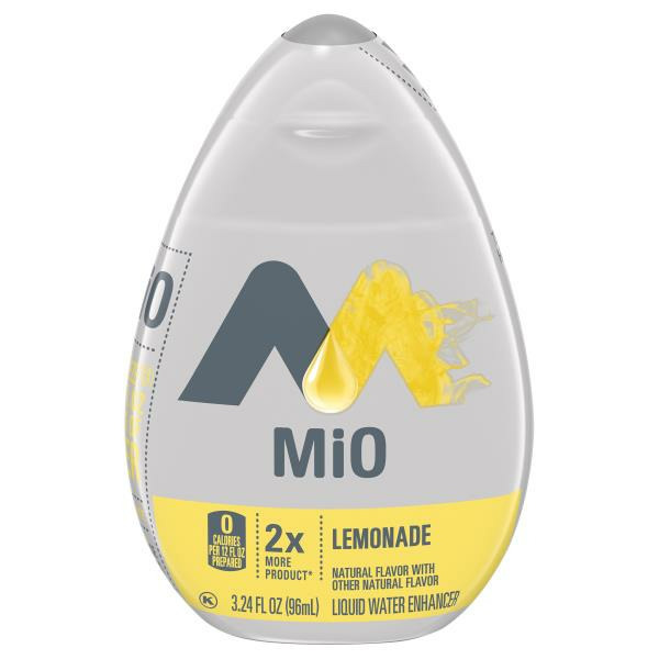 Details: MiO Naturally Flavored Lemonade Liquid Water Enhancer Big Bottle fixes plain water and turns it into a refreshing drink to invigorate your day. A single squeeze of our lemonade water flavor enhancer delivers bold citrus taste to bottled water. MiO sugar free liquid water drops provide a burst of flavor with zero calories and zero sugar. Our portable 3.24 fluid ounce bottle of water flavoring drink mix fits neatly in your bag, pocket or glove box for easy on-the-go mixing. With just one squeeze, MiO flavored water additive provides enough bright, lemon flavor for 12 fluid ounces. Whether you're studying, working or heading to the gym, add MiO lemonade to your water for a delicious citrus flavored beverage that keeps you sipping.