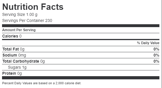 Ingredients: DEXTROSE WITH MALTODEXTRIN, ASPARTAME, ACESULFAME POTASSIUM.