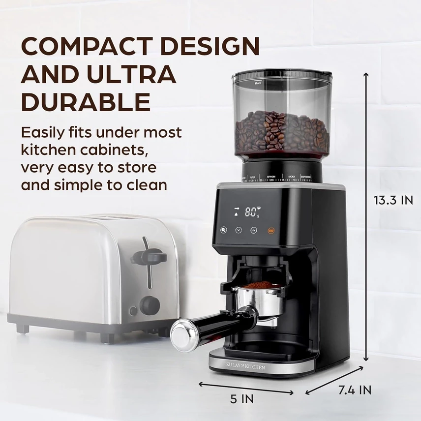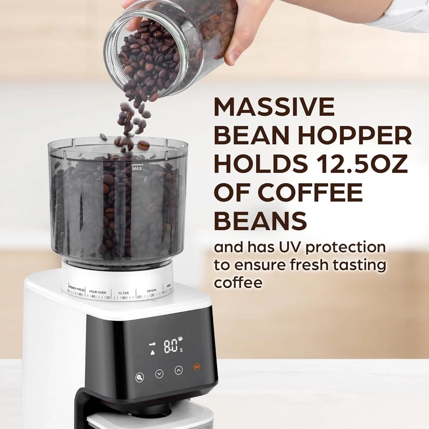 Anti-Static Technology: Keeps grounds flowing smoothly while reducing mess, offering a cleaner grinding experience.