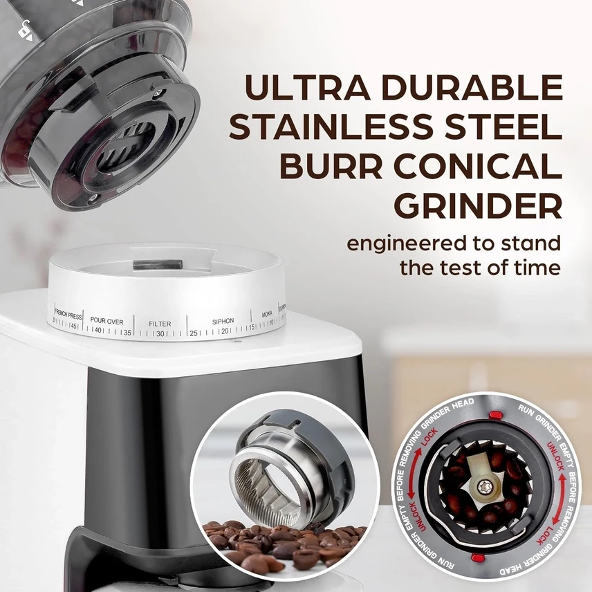 Elevate your coffee experience with our Conical Burr Coffee Grinder. With 51 grind settings and precision cup control, it delivers smooth, fresh coffee every time. Designed for consistency and flavor, it's your perfect coffee companion.