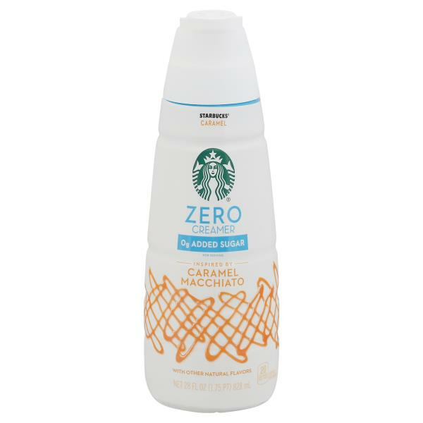 Details: Starbucks Zero Caramel Flavored Liquid Coffee Creamer lets you enjoy your favorite Starbucks cafe flavors at home with zero grams added sugar per serving. Inspired by our signature Starbucks Caramel Macchiato, this Starbucks caramel flavored creamer makes every cup taste like the real thing. We crafted this dairy creamer with layers of sweet, butter caramel and vanilla flavoring to pair perfectly with our coffee for a sweet and satisfying sip. Add this flavored caramel coffee creamer liquid to either iced or hot coffee, including your favorite Starbucks iced coffee drink. Elevate any cup to cafe quality with this flavored caramel creamer. This liquid creamer is a tasty alternative to milk and half and half. Keep Starbucks Zero Caramel Flavored Liquid Coffee Creamer refrigerated. Starbucks and the Siren logo are trademarks of Starbucks used under license by Nestle. Not a low calorie food.