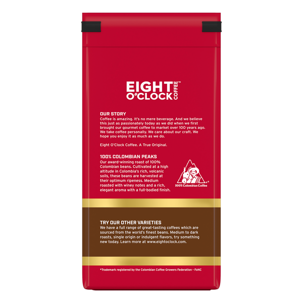 Details: Eight O'Clock Coffee has been selecting and roasting high quality 100% Arabica coffee at a great value for over 160 years. From selecting high-quality beans, to roasting them in carefully controlled batches, to packaging them so no flavor is lost, it all comes down to craftsmanship. We only hire experts with the highest levels of experience, skill and passion - it’s the only way to deliver the consistently excellent coffee you’ve come to expect. Eight O'Clock has a full range of great tasting coffees; from medium to dark roasts, single origin, flavors, and single serve pod, try Eight O'Clock coffee today.