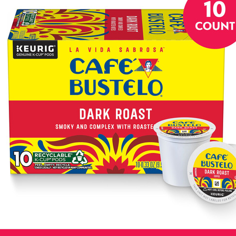 ¡Bienvenidos! With nearly 100 years of coffee experience serving the Latin community, Café Bustelo coffee embodies an iconic passion, energy and thirst for life. In our dark roast coffee, that passion and flavor collide in a full-bodied, smoky and complex coffee with roasted notes. Es un sabor único. Every sip is a bold and delicious expression of lively Latin spirit — just brew a cup to taste what we mean. Our K-Cup pods are compatible with Keurig single serve brewers for convenient prep. Enjoy your beverage hot or cold — the pure, rich flavor of our coffee stands up to milk, sugar and ice for easy drinking with every cup. Try it today — y vivir la vida sabrosa.